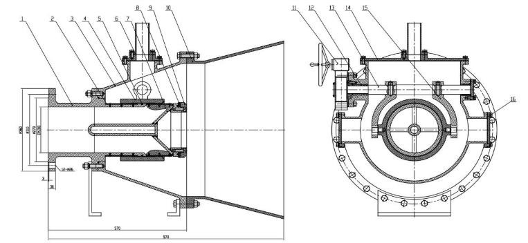 固定錐形閥具有一個固定錐,固定錐型體設計符合流體力學特點。固定錐由葉片支撐。由于錐體的導向作用,水流排放時,會以寬廣的錐形角度擴散,并分解為稀薄的噴淋狀,此時水流與空氣大面積摩擦而霧化,產生極好的消能效果。在安裝導流罩的固定錐形閥中,水經由各個噴孔噴出并相互碰撞,水柱的互相沖擊會使速度能量基本消失。大大減弱了排水防水流對下游管道或河道、建筑物的沖擊。